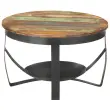 Ta lesena klubska mizica dodaja industrijski izgled ter je popolna izbira za vaše bivalne prostore. Ta okrasna mizica je ročno izdelana iz trdnega predelanega lesa, ki je pridobljen iz tramov, tal in podpornih stebrov starih porušenih stavb. Vsebuje različne vrste lesa, kot so tikovina, trd les, tropski les, mangov les itd. To pomeni, da predelan les ohranja značilnosti teh različnih vrst lesa. Predelan les je že staran, izpostavljen vremenskim vplivom in sušen, zato se ne bo skrčil ali ukrivil. Železen podstavek prispeva k dodatni stabilnosti. Močna površina mize je primerna za odlaganje pijače ali prigrizkov. Pomembna opomba: Barve in vzorci se od kosa do kosa razlikujejo, zato je vsak kos edinstven; dostava je naključna.Material: Trden predelan les z večbarvnim premazom, železo s črnim prašnim premazomDimenzije: 68 x 43 cm (Premer x V)Potrebno sestavljanje: Da