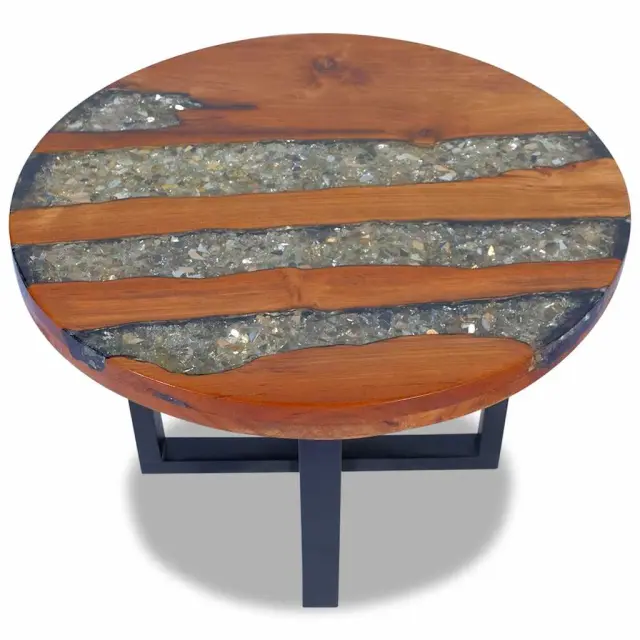 Klubska mizica - kavna mizica - Nizka mizica iz tikovine in smole 60 cm