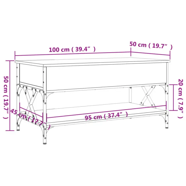 Klubska mizica - kavna mizica - Nizka mizica dimljeni hrast 100x50x50 cm inž. les in kovina