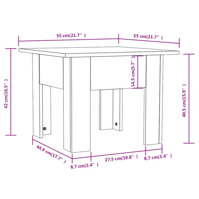 Klubska mizica - kavna mizica - Nizka mizica bela 55x55x42 cm iverna plošča