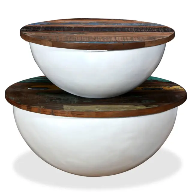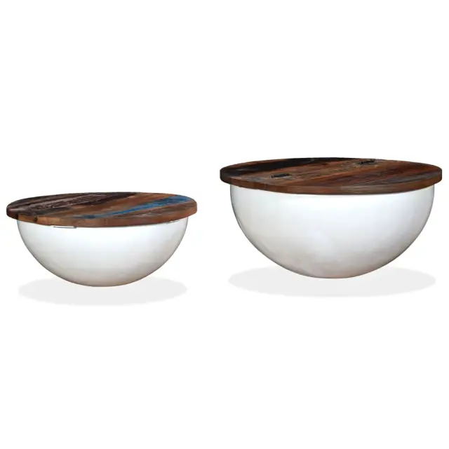 Klubska mizica - kavna mizica - Nizka mizica 2 kosa trden predelan les bela oblika sklede