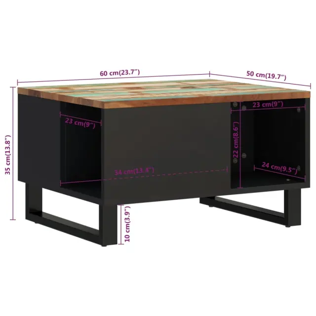 Klubska mizica - kavna mizica - Nizka mizica 60x50x35 cm trden predelan les