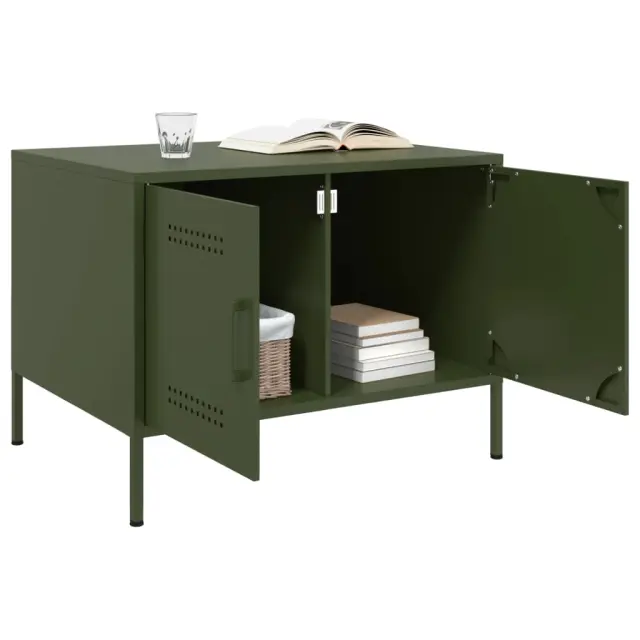 Klubska mizica - kavna mizica - Nizka mizica olivno zelena 68x50x50,5 cm jeklo