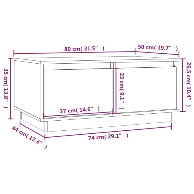 Klubska mizica - kavna mizica - Nizka mizica medeno rjava 80x50x35 cm trdna borovina