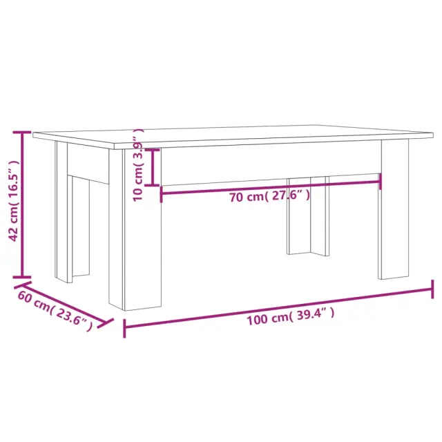Klubska mizica - kavna mizica - Nizka mizica rjavi hrast 100x60x42 cm inženirski les