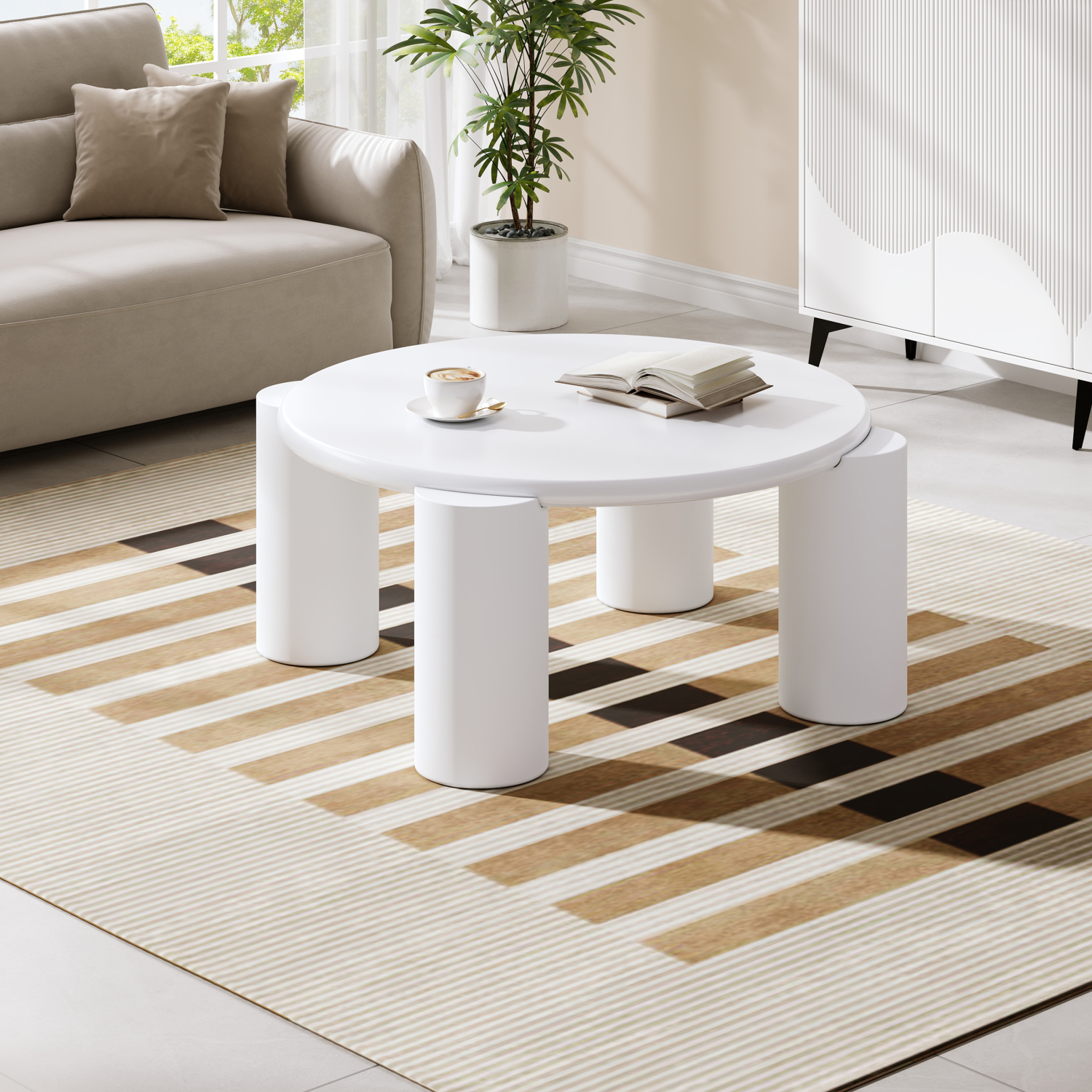 Klubska mizica White cloud, moderna, 4 trdne noge, okrogla, za dnevno sobo, spalnico, balkon