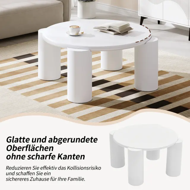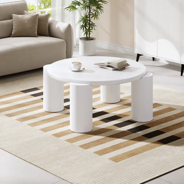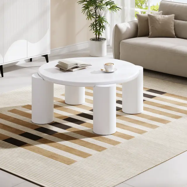 Klubska mizica White cloud, moderna, 4 trdne noge, okrogla, za dnevno sobo, spalnico, balkon