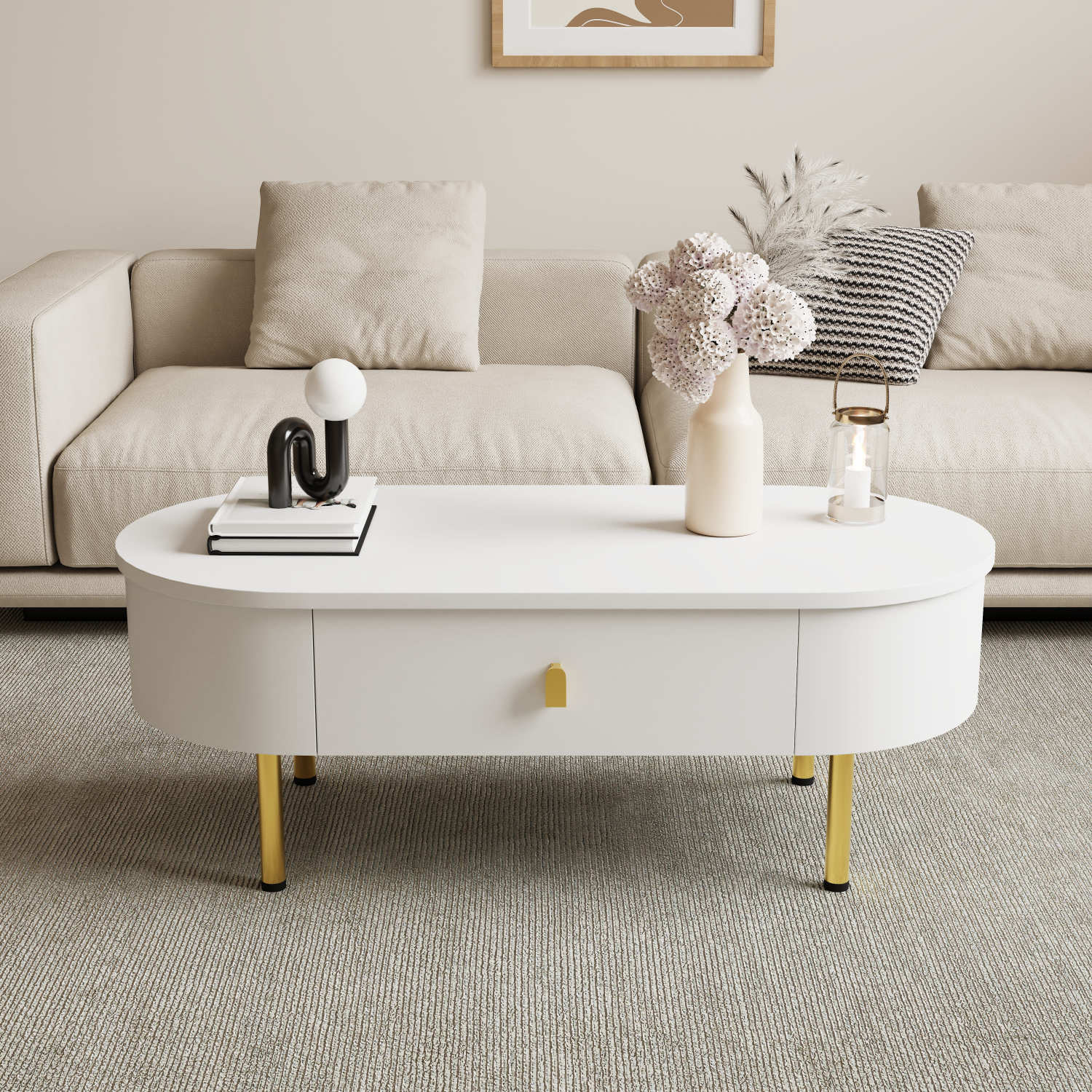 Klubska mizica z dvema predaloma, zlati ročaji/noge, zaobljeni vogali