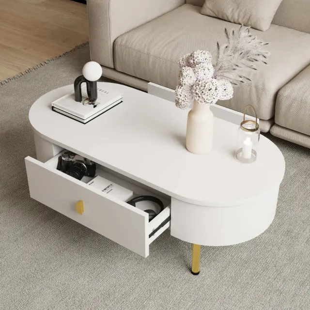 Klubska mizica z dvema predaloma, zlati ročaji/noge, zaobljeni vogali