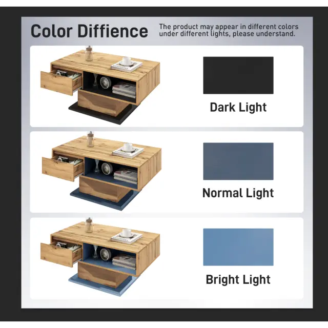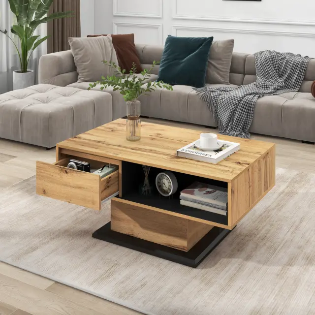 Klubska mizica z lesenim vzorcem in predalom brez ročajev, dvostranski prostor za shranjevanje za pisarno/dnevno sobo.