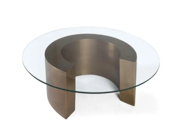 Klubska mizica z okroglo stekleno ploščo in poševnim robom