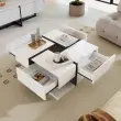 Klubska mizica z visokim sijajem in 4 predali, edinstven barvni/linijski dizajn, prostor za shranjevanje. 78x78x36cm
