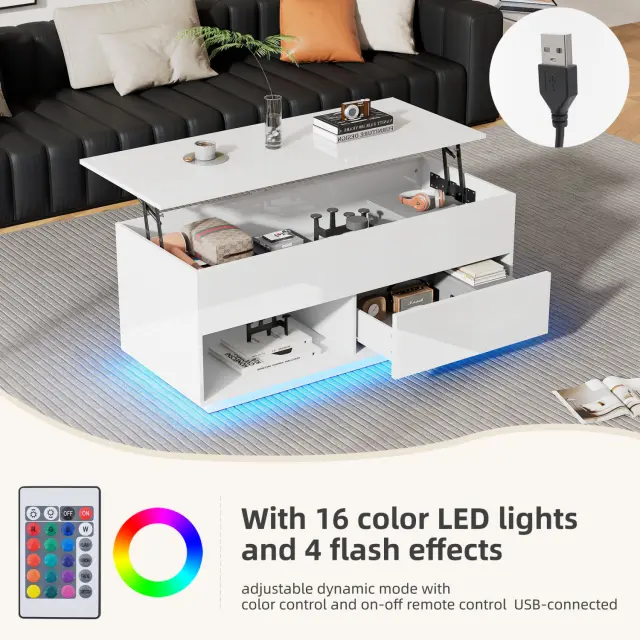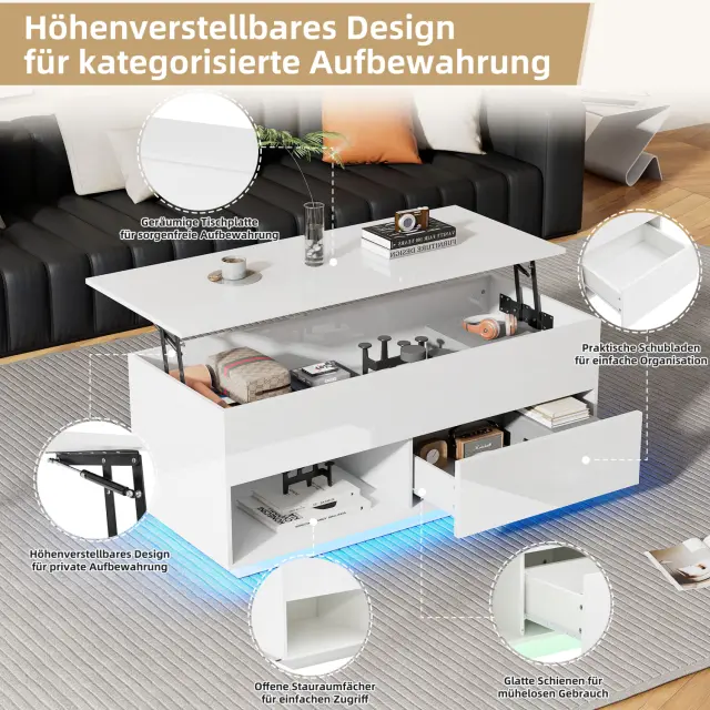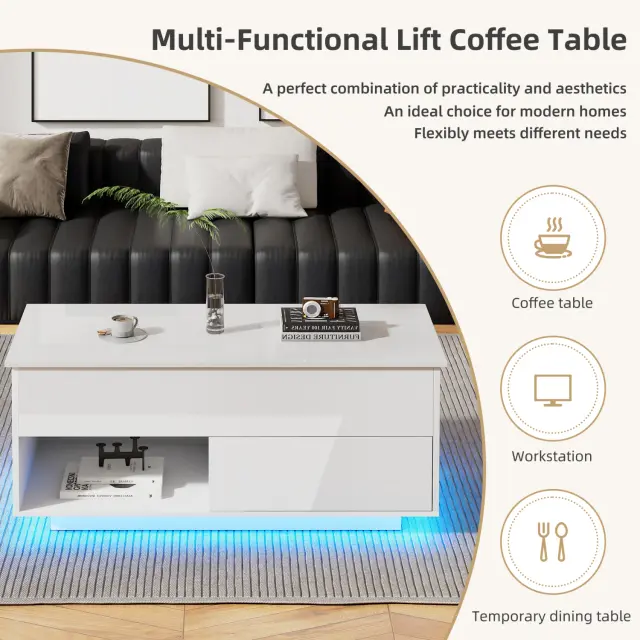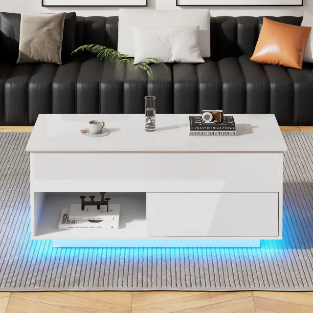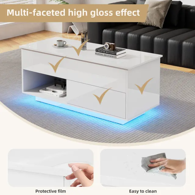Klubska mizica z visokim sijajem in LED osvetlitvijo, 100x50x55 cm, nosilnost 50 kg