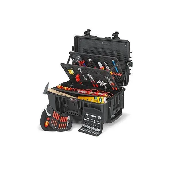Proizvajalec:Knipex-WerkOznake:Kavček za orodje best.., ploventip:00 21 37Set za elektromonterje:daSet za monterje ogrevalnih/sanitarnih sistemov:nepakiranje:kufroKnipex-Werk kovček za orodje 00 21 37: več podrobnosti00 21 37 Kovček za orodje Robust45 Move Elektro Bogato opremljen s 63 orodji blagovnih znamk, nekatera preizkušena po VDE standardu DIN EN 60900. Največja obremenitev: 35 kg. Največja obremenitev: 35 kg. Prostornina 45 litrov. Za najtežje pogoje: Odpornost na prah, vodo in temperaturo. Plinska tlačna loputa v tečaju. Pnevmatsko blažen pokrov. Predal za dokumente. Deske za orodje iz votlo-komornih plošč iz PP, ki ne odpuščajo umazanije, z žepi za orodje in zankami, ki jih je mogoče opremiti. Skupaj 147 rež. Spodnji pladenj z aluminijastimi pregradami. Raztegljiv teleskopski ročaj za udoben transport. Velika kolesa z gladkim tekom. Zunanje mere (širina x višina x globina): 609 x 428 x 263 mm Notranje mere (širina x višina x globina): 540 x 364 x 229 mm. Odporen na prah in vodo. Samodejni ventil za izenačevanje tlaka. Temperaturna stabilnost od -30 do +80 °C. Naprava za visečo ključavnico. Zaklenljiv spodnji pladenj, ki ga je mogoče ločiti z aluminijastim pregradnim sistemom. Ergonomski dvokomponentni ročaj. Letu primerno ohišje iz polipropilena, odpornega proti udarcem. - Širina zunanjih dimenzij (znotraj): 609 mm 540 mm - Višina zunanjih dimenzij (znotraj): 263 mm 229 mm - Globina zunanjih dimenzij (znotraj): 428 mm 364 mm Obseg dobave: 1 x 86 03 180 KNIPEX klešče ključ Klešče in ključ v enem orodju, 1 x 98 52 KNIPEX kabelski nož, 1 x 97 53 04 KNIPEX samonastavljive klešče za stiskanje žičnih ovojev s stranskim vstopom (0,08 ¿ 10 + 16 mm²), 1 x 08 26 145 KNIPEX kombinirane klešče s konicami, 1 x 87 01 180 KNIPEX Cobra visokotehnološke klešče za vodno črpalko, 1 x 98 25 01 SL KNIPEX izvijač (Slim) za vijake Pozidriv s križno zarezo (PZ 1), 1 x 98 20 35 SL KNIPEX izvijač (Slim) za vijake z zarezo (3,5 mm), 1 x 13 86 200 KNIPEX klešče za električne inštalacije (Ø 15 mm / 50 mm²), 1 x 16 95 01 SB KNIPEX ErgoStrip univerzalno orodje za odstranjevanje trakov za desničarje (Ø 8, 0 ¿ 13,0 mm), 1 x 70 06 160 KNIPEX stranske klešče, 1 x 74 06 200 KNIPEX električne stranske klešče, 1 x 26 26 200 KNIPEX ploščate okrogle klešče z rezalnim robom (štorklje), 1 x 004018 Wera Zyklop kovinski set ročic 8100 SA 8 28-delni (1/4), 1 x 003760 Wera Joker dvojni odprti ključ (10 x 13 mm), 1 x 003484 Wera Kraftform Kompakt VDE 16 Slim, 1 x 0030312-0300 Picardovo montersko kladivo (300 g), 1 x 361 252 1 Rennsteigovo električarsko dleta (250 x 10 mm), 1 x 16135 Stabila vodna gladilka tip 70 Electric (430 mm), 1 x 18115 Stabila mini vodna gladilka Pocket Electric (68 mm), 1 x 12 52 195 SB KNIPEX PreciStrip16 avtomatski odstranjevalec žice (0,08 - 16 mm²),. EAN: 4003773082606