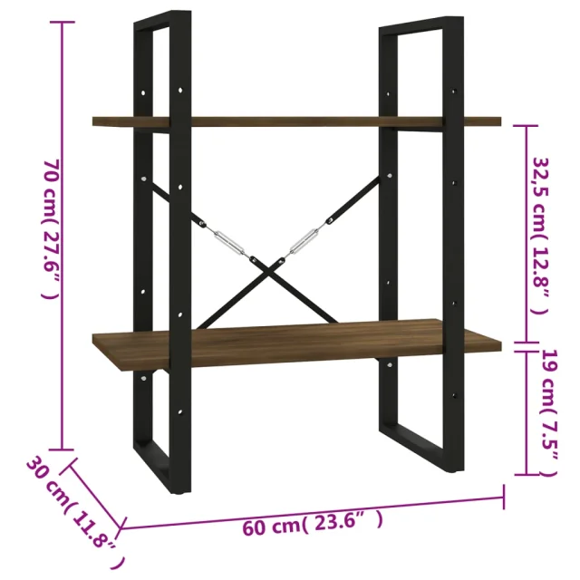 Knjižna omara - Knjižni regal 2-nadstropna rjav hrast 60x30x70 cm konstr. les