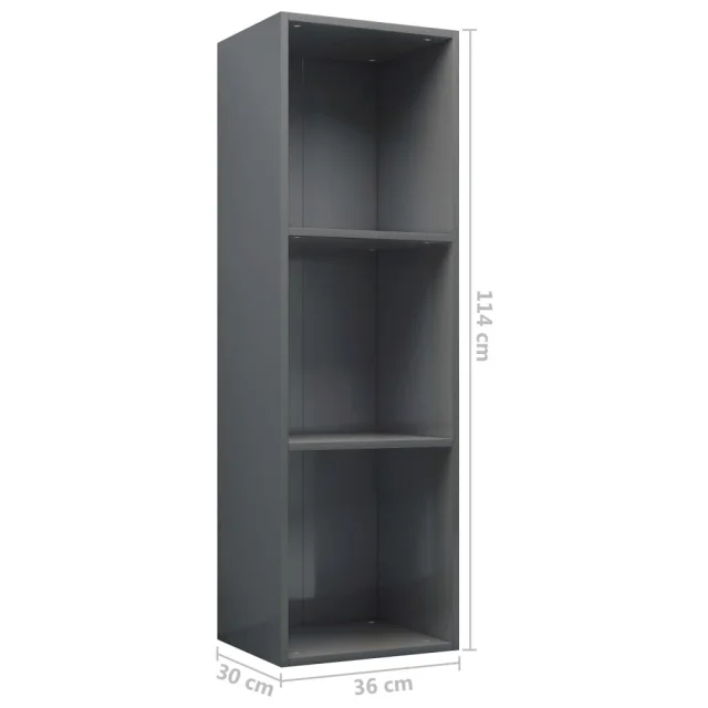 Knjižna omara - Knjižni regal visok sijaj siva 36x30x114 cm iverna plošča