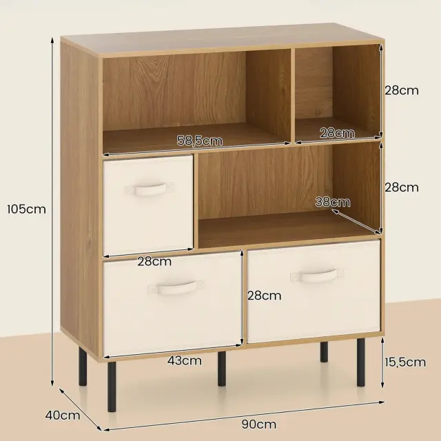 Z našo 3-stopenjsko knjižno omaro spremenite svoj bivalni prostor in ga hkrati pospravite. Omarica ima 6 prostornih predalov in 3 odstranljive predale iz blaga, ki so zasnovani tako, da izkažejo vaše najljubše predmete in vam dajejo svobodo pri urejanju prostora za shranjevanje po vaših potrebah. Klapajoče ali nestabilno pohištvo je stvar preteklosti - naša sodobna knjižna omara stabilno stoji na 5 trdnih kovinskih nogah in je opremljena z 2 sklopoma proti nagibanju, ki zagotavljata vašo varnost. Ne le, da je trdna, zaradi gladke površine in premišljeno dvignjene oblike jo je tudi izjemno enostavno čistiti. Ta stranska omarica, ki je idealna za dnevno sobo ali za izboljšanje domače pisarne, bo v vaš dom vnesla slog in vzdušje brez stresa.