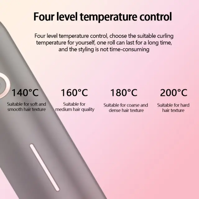 Natančen nadzor temperature: Z našo funkcijo nadzora temperature dosežete popolne volnene kodre vsakič. To vam omogoča, da prilagodite nastavitev toplote, da ustreza vašemu tipu las, kar zmanjšuje morebitno škodo in zagotavlja dosledne rezultate. Natančen nadzor temperature zagotavlja enakomerno porazdelitev toplote po cevi od 16 mm do 20 mm, kar ustvarja poskočne, dolgotrajne kodre brez prekomerne izpostavljenosti toploti. Ta kodralnik je idealen za ustvarjanje definiranih, voluminoznih kodrov na kratkih laseh, kar zagotavlja kakovosten zaključek v udobju vašega doma. Temperaturne nastavitve segajo od nežne toplote za tanke lase do višje toplote za debelejše, bolj odporne tipe las, kar zagotavlja optimalno oblikovanje za vsakogar.