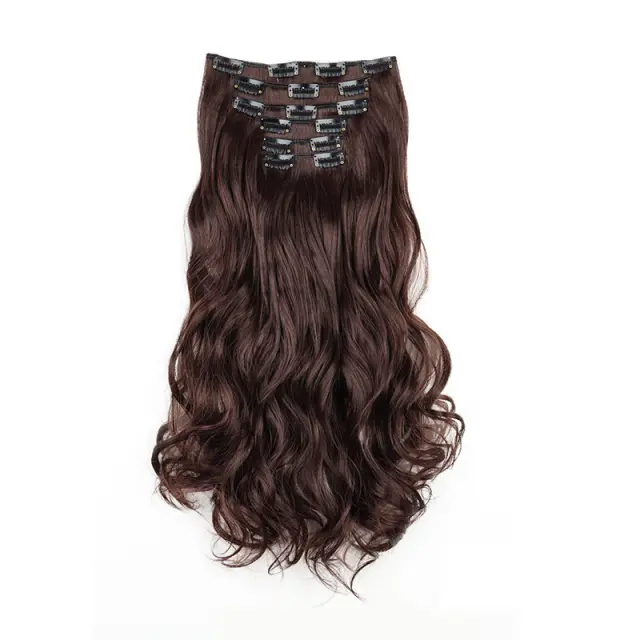 Takojšen volumen in dolžina: Dosezite osupljivo preobrazbo z našimi kodrastimi podaljški za lase s 16 sponkami. Ta komplet 6 kosov takoj doda volumen in dolžino vašim naravnim lasem, ustvari glamurozen in poln videz v nekaj minutah. Popoln za posebne priložnosti ali vsakodnevno nošenje, ti podaljški se neopazno zlijejo z vašimi lasmi za naraven in neopazen zaključek. Uživajte v samozavesti, ki jo prinašajo lepi, voluminozni lasje brez obveznosti trajnih podaljškov.