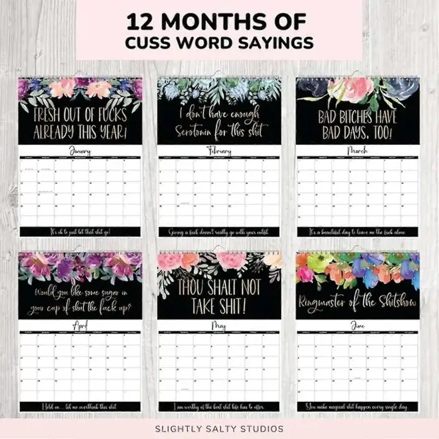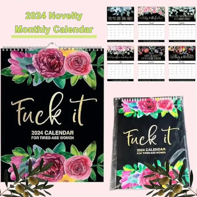 Koledar za leto 2025 za utrujene ženske, mesečni koledar, novost Fuck It Funny, opomba o cvetličnem koledarju, koledar duševnega zdravja, darilo