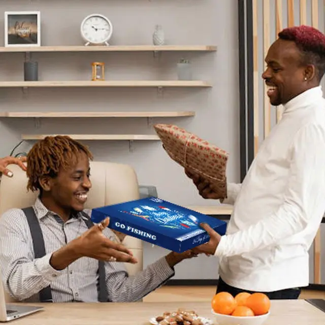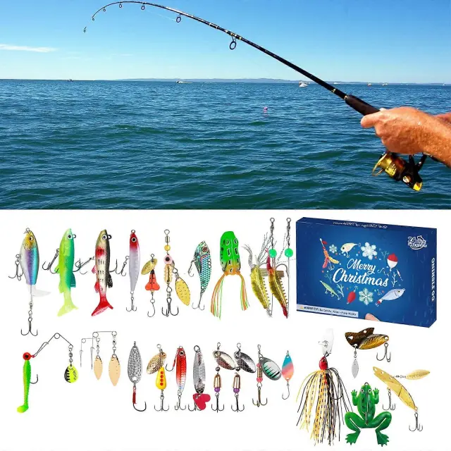 Koledar za odštevanje prazničnih ribiških orodij 24 dni do božiča Škatla za pribor za presenečenje za ribiče Darilo za očeta in sina