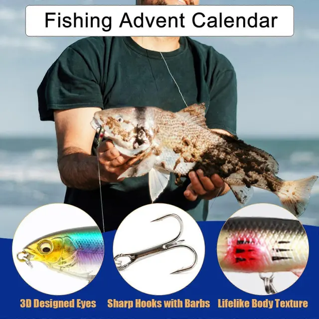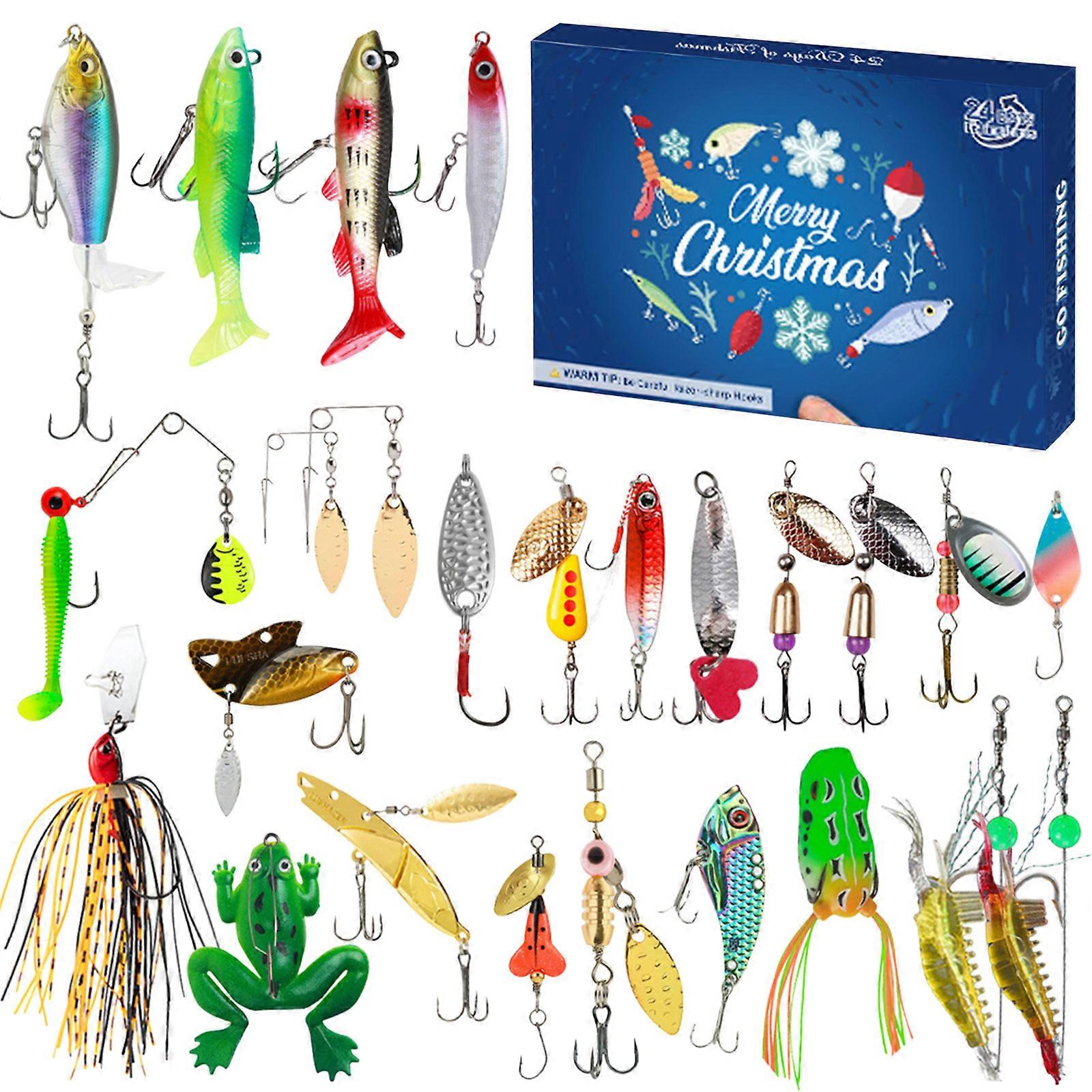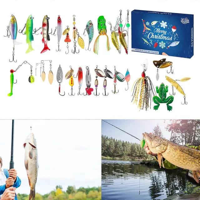 Koledar za odštevanje prazničnih ribiških orodij 24 dni do božiča Škatla za pribor za presenečenje za ribiče Darilo za očeta in sina