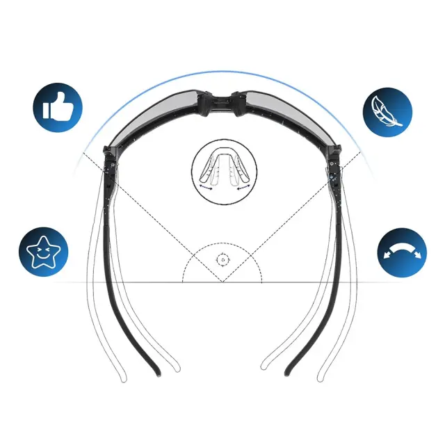 - Lahek in prilagodljiv dizajn. Očala so zasnovana za maksimalno udobje, zato dolgotrajno nošenje ni obremenjujoče,