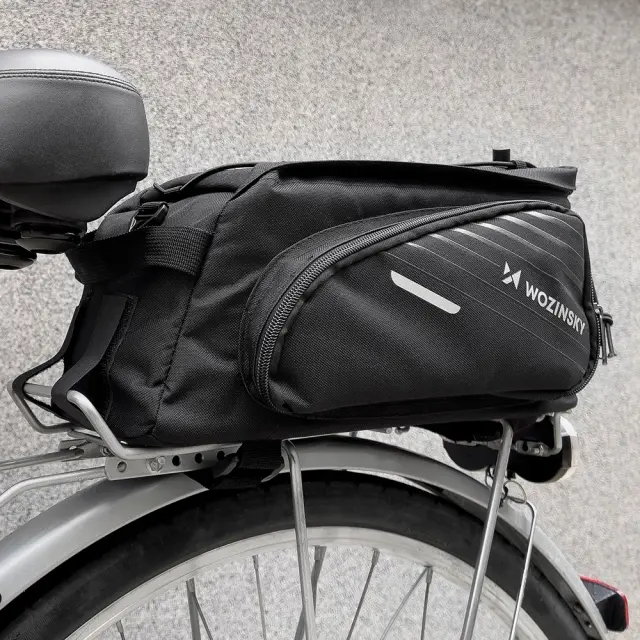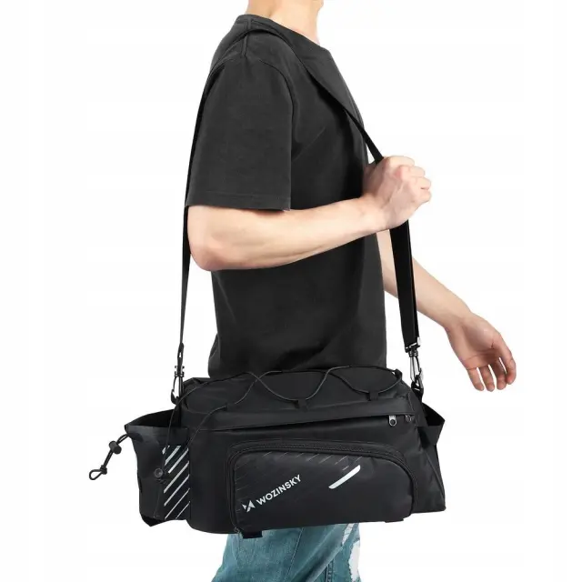 Izberite torbo za nosilec koles Wozinsky WBB22BK s trakom. Je udoben, varen in trden, izdelan iz močnega in na trganje odpornega najlona. Lahko ga nosite na rami, v roki ali pritrdite na prtljažnik. Ima prostornino 9 litrov, tako da lahko nosite vse predmete, ki jih potrebujete za vikend izlet. Pomembno je, da bodo stvari pravilno organizirane, saj ima torba veliko predelkov, žepov (vključno z enim zložljivim) in zunanje tkanje. Priložena dežna prevleka jih bo zaščitila pred dežjem in snegom.