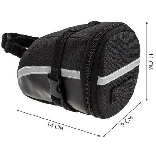 SPECIFIKACIJA – vodoodporen: da; prostornina: 1,5 l; zapenjanje: velcro; odsevni trak: da; montaža: pod sedežem; mere: 14/9/11 cm; teža: 0,086 kg; teža v paketu: 0,095 kg.