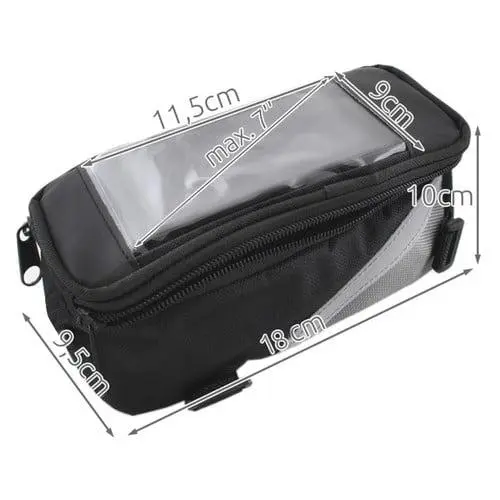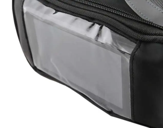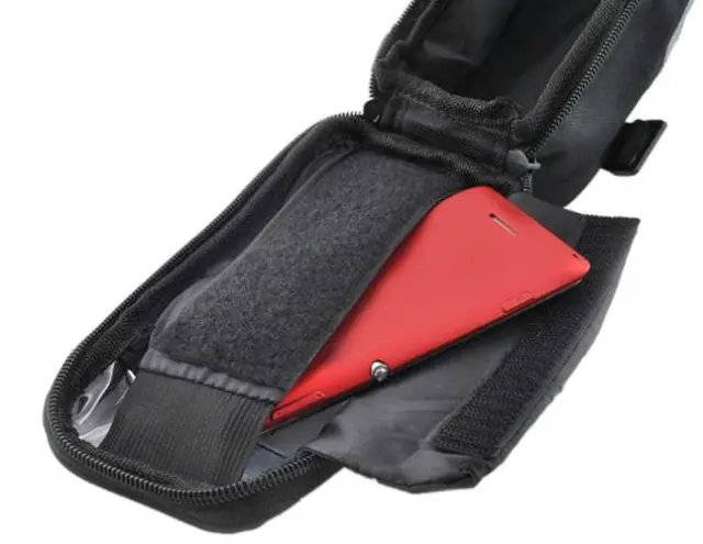 Celotna zadeva je odporna na škropljenje – uporabljate jo lahko tudi v dežju. Sprednja plošča je izdelana iz prozorne, trpežne folije, ki “prevaja” dotik, zaradi česar je idealna za naprave na dotik. Zahvaljujoč temu vam telefona ni treba jemati iz torbe, kar je še posebej pomembno v dežju. Enostavno lahko uporabljate tudi aplikacije za vadbo na telefonu ali se pogovarjate po zvočniku med vožnjo s kolesom. Vreča se lahko namesti na stran krmila ali na sedežno oporo.