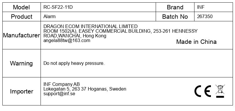 Baterija za alarm: 3 x AAA baterije