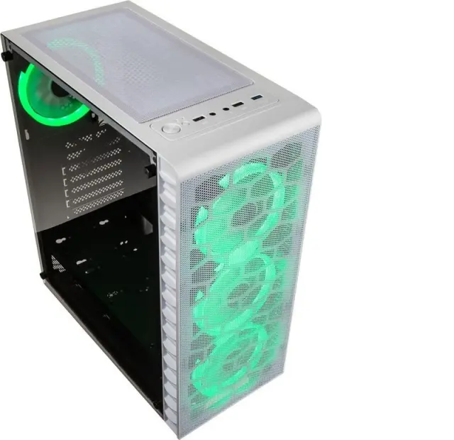 Ohišje ATX mid-tower s sprednjo stranjo iz polne mreže in stranskimi ploščami iz kaljenega stekla
