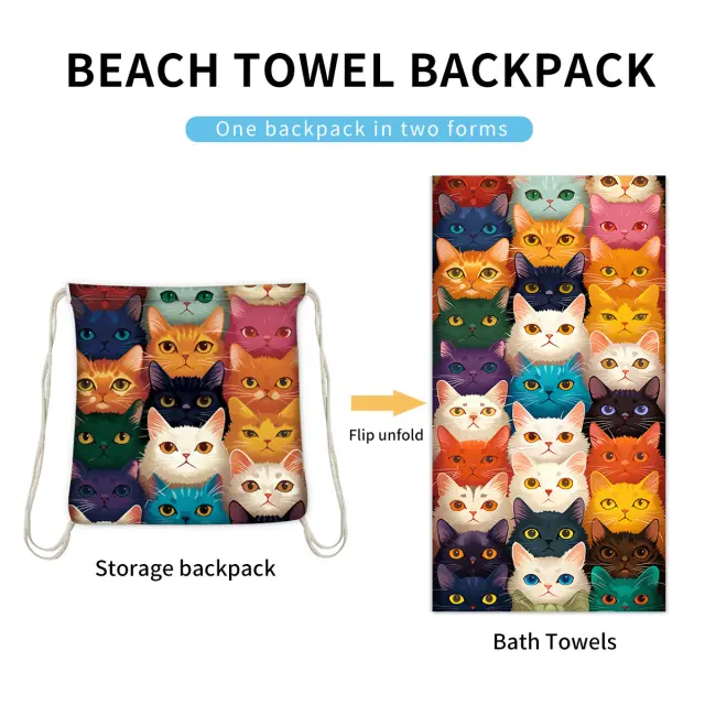 Dizajn 2 v 1: Ta inovativna brisača za na plažo se spremeni v priročen nahrbtnik, zato ne potrebujete dodatne torbe. Uživajte v prostoročnem prenašanju svojih potrebščin na poti na plažo ali bazen.
