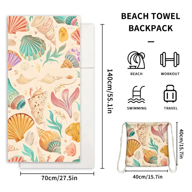 Dizajn 2 v 1: Ta inovativna brisača za na plažo se spremeni v priročen nahrbtnik, zato ne potrebujete dodatne torbe. Uživajte v prostoročnem prenašanju svojih potrebščin na poti na plažo ali bazen.