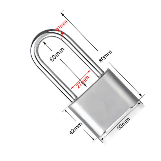 Izboljšana varnost: Kombinacijska ključavnica z dolgim lokom HD02 zagotavlja zanesljivo varnostno rešitev za različne namene. Njena robustna konstrukcija iz cinkove zlitine nudi odpornost proti posegom in prisilnemu vstopu, kar zagotavlja, da vaše dragocenosti ostanejo varne. Mehanizem kombinacijske ključavnice odpravlja potrebo po ključih, kar zmanjšuje tveganje izgube ali kraje. Popolna za zavarovanje omaric, prtljage in drugih osebnih predmetov, ta ključavnica nudi brezskrbnost, kamorkoli greste.