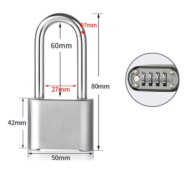 Vsestranska uporaba: Ta kombinacijska ključavnica je neverjetno vsestranska in se lahko uporablja v številnih okoljih. Od zavarovanja prtljage med potovanjem do zaščite omaric v telovadnici ali šoli, je ta ključavnica idealna izbira. Njena zasnova z dolgim lokom zagotavlja dodatno prilagodljivost, kar ji omogoča, da se prilega različnim sponkam in zapiralom. Elegantna srebrna obdelava doda pridih sloga, hkrati pa zagotavlja zanesljivo varnost.