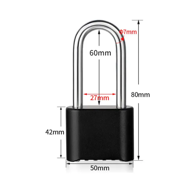 Izboljšana varnost: Ta HD02 kombinacijska ključavnica z dolgim lokom zagotavlja zanesljivo varnostno rešitev za vaše dragocenosti. Mehanizem kombinacijske ključavnice odpravlja potrebo po ključih, kar zmanjšuje tveganje izgube ali kraje ključev. Njena robustna konstrukcija iz cinkove zlitine nudi odpornost proti poseganju in prisilnemu vstopu, kar zagotavlja, da vaša lastnina ostane varna in zaščitena, ne glede na to, ali varujete prtljago, omarice ali druge osebne predmete. Uživajte v miru, saj veste, da je vaša lastnina dobro varovana.