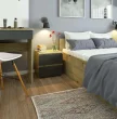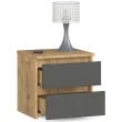 Nočne omarice so funkcionalno pohištvo, ki odlično deluje v spalnici. Najbolje je, da omarico postavite ob posteljo, kar vam omogoča, da imate pri roki osnovne predmete, ki povečujejo udobje počitka in spanja. V naši ponudbi je na voljo izjemno elegantna nočna omarica CL2 40. Pritegne pozornost z zanimivo kombinacijo barv umetniškega hrasta in grafitno sive. Dresser CL2 40 ima številne prednosti, med katerimi lahko omenimo: - eleganten in moden videz - pohištvo ima preprosto obliko, zanimivo kombinacijo barv umetniškega hrasta in grafitno sive, - trajnost - nočna omarica je izdelana iz visokokakovostne laminirane plošče, odporne na obrabo, - udobje uporabnika - predali se premikajo na kovinskih valjčnih vodilih, - odpornost - vrh, stranice in sprednje strani so obrobljene z ABS obrobo, - kapaciteta - pohištvo ima dva predala, ki ju je mogoče prosto razporediti, - funkcionalnost - omarica bo odlično delovala v spalnici, - privlačna cena, - brez tveganja - nočna omarica je pokrita z garancijskim rokom (24 mesecev).