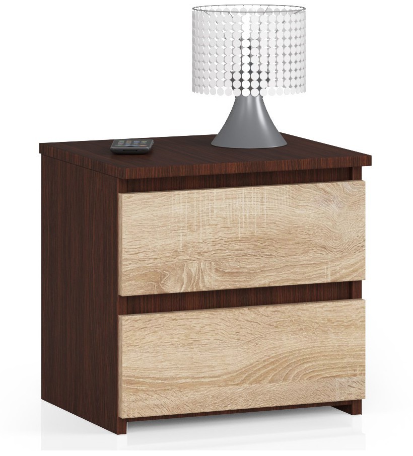 Tukaj je bila uporabljena kombinacija dveh klasičnih barv. Telo konstrukcije je v barvi Wenge, ustrezno temno, skoraj čokoladno. Predali se kontrastno ujemajo, izdelani so v barvi sonoma. Celota izgleda izjemno dobro, odlično se bo prilegala v dnevno sobo ali spalnico, kjer je bil uporabljen podoben stil zaključka. Ne moremo pozabiti na že omenjene predale. Izkoristite lahko dva, ki ponujata precejšen prostor za dodatke. Omara je dolga 40 centimetrov, njena višina je prav tako enaka, medtem ko je globina 35 centimetrov.