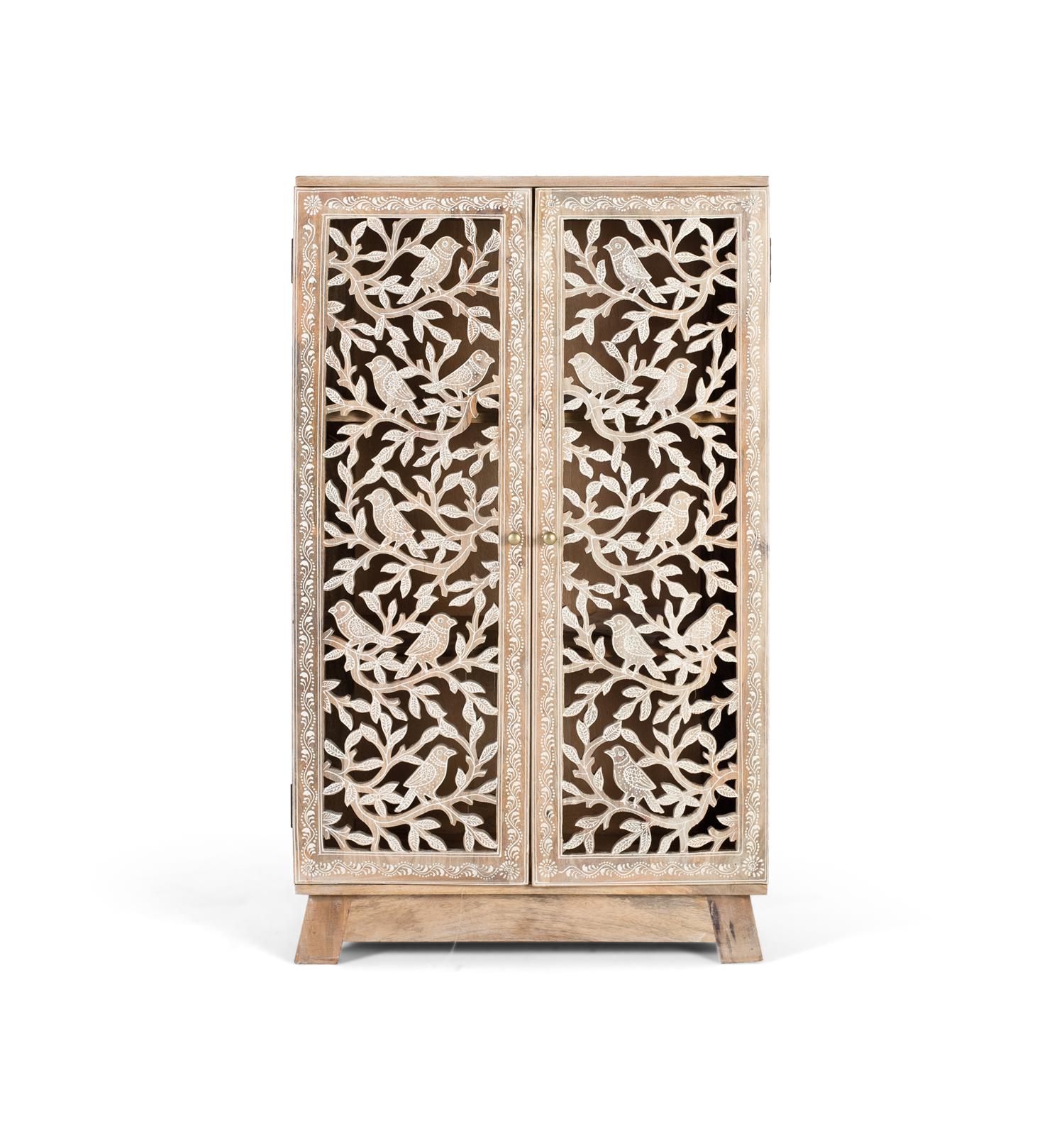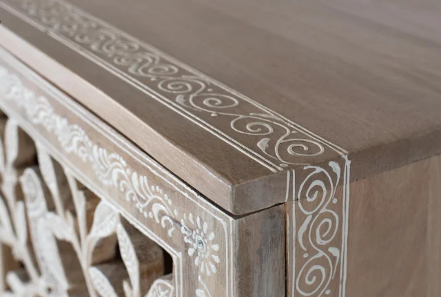 Komoda iz mangovega lesa z ročno izrezljanimi vrati