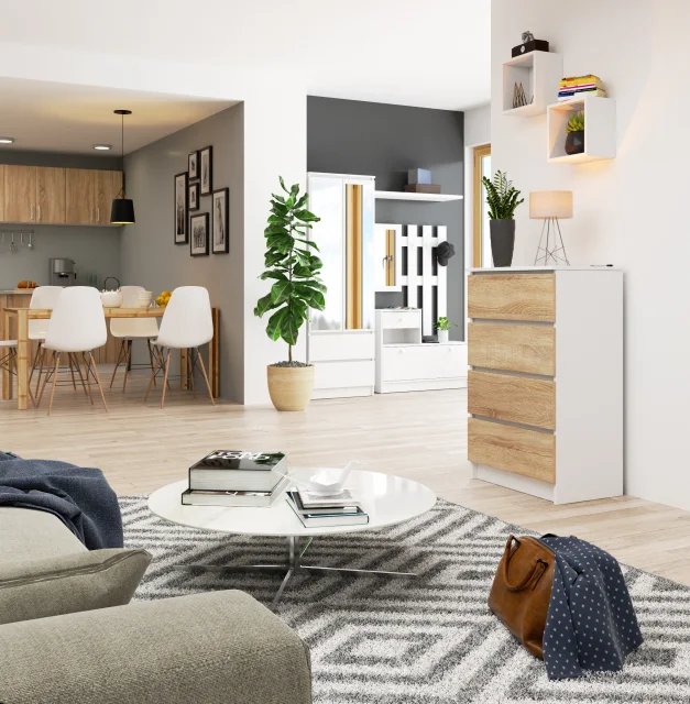 KOMODA K 60 cm 4 Predali BELO / SONOMA