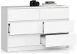 Pri izdelavi pohištva se posebna pozornost posveča funkcionalnosti izdelkov in njihovim visokim estetskim vrednostim. Popoln primer tega je 120 cm široka komoda. Ta praktičen kos pohištva je izdelan iz na praske odporne laminirane plošče, kar zagotavlja njegovo trajnost in moč. V kar šestih prostorninah predalov se lahko enostavno prilegajo različne knjige, dokumenti ali drobnarije. Nekateri naši kupci se odločijo, da vanjo shranijo oblačila in celo posteljnino. Bela komoda ima eleganten dizajn. Njena preprosta oblika in eleganten zaključek se prilegata tako klasičnim in elegantnim notranjim ureditvam kot tudi romantičnim. Ta edinstven kos pohištva se odlično predstavi v stilski dnevni sobi, pa tudi v prijetni spalnici. Uporablja se tudi kot element garderobe ali hodnika. Komoda s 6 predali je cenjena tako med posameznimi kupci kot tudi med podjetniki. Zaradi svojega brezhibnega videza in izjemne kapacitete se odlično obnese kot element pisarniške opreme.