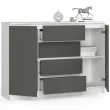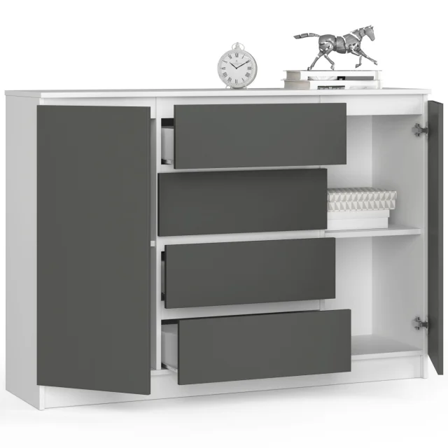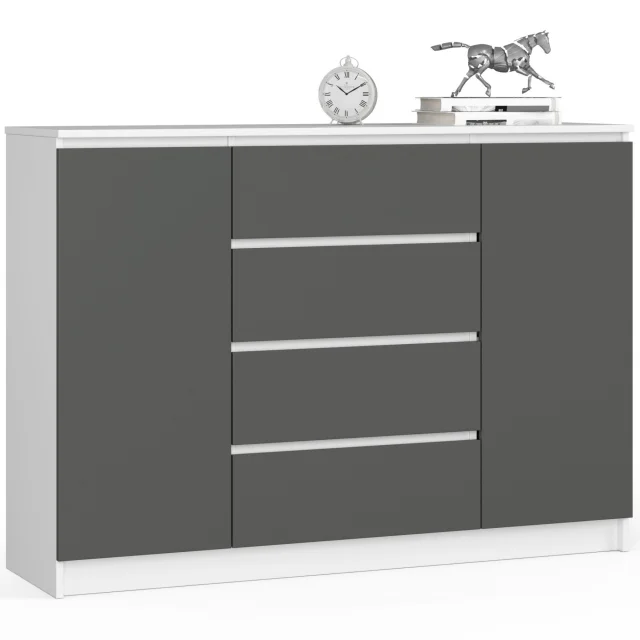 - Komoda je izdelana iz visokokakovostne 16 mm laminirane plošče, odporne na obrabo, proizvajalec kronospan