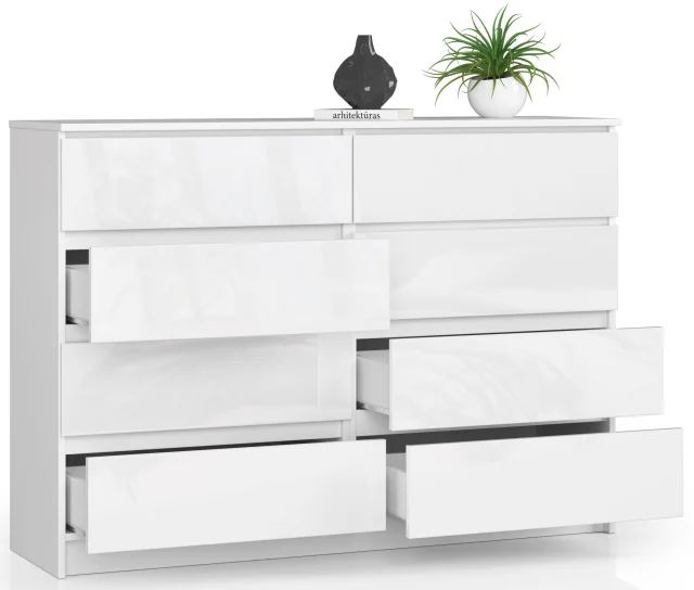- Telo komode je izdelano iz 16mm bele mat laminirane plošče, odporne na obrabo