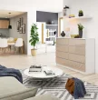 K 140 cm dnevna omara je velik kos pohištva, ki svojim uporabnikom ponuja zelo funkcionalne rešitve. Opremljena je z kar 8 prostornimi predali, kar je izjemno praktično in priročno. Dobro premišljen dizajn ustvarja privlačne možnosti postavitve, kar jo naredi primerno ne le za dnevno sobo, temveč tudi za druge prostore, kot sta spalnica ali soba za goste.