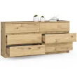 Sodobna komoda K 160 cm. je izdelek, ki združuje visoko estetsko kakovost s funkcionalnostjo. Pohištvo sestavlja šest prostornin predalov, kar ga naredi primernega za uporabo v dnevni sobi, mladinski sobi, pisarni, jedilnici, pa tudi v mnogih drugih prostorih, kjer bo omogočilo shranjevanje številnih predmetov. Komoda, ohranjena v zanimivi barvni shemi (rokodelski hrast), se bo zelo dobro prilegala notranjostim, zasnovanim v industrijskem, modernem, skandinavskem ali loft slogu, prav tako pa bo pritegnila ljubitelje retro vzdušja. To je opazna ponudba, ki jo je mogoče uskladiti z drugimi komodami, omarami, policami in mizami, zasnovanimi v istem slogu. Minimalistična oblika, združena z visoko kakovostjo, bo zagotovo prepričala mnoge kupce.