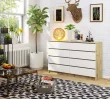 - Telo komode je izdelano iz 16mm bele mat laminirane plošče, odporne na obrabo
