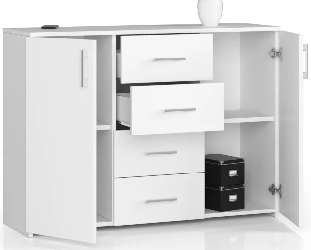 - Komoda je izdelana iz na praskanje odporne laminirane plošče