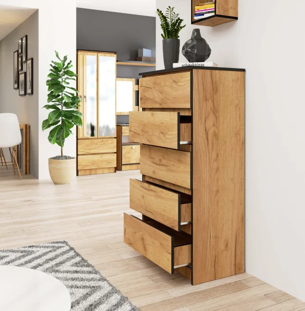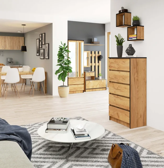 - Komoda je izdelana iz površinsko odporne laminirane plošče