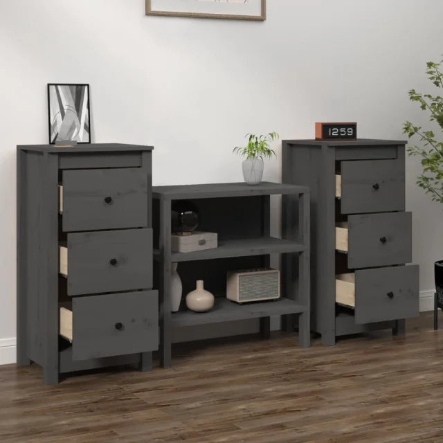 Komoda - Predalnik 2 kosa siva 40x35x80 cm trdna borovina